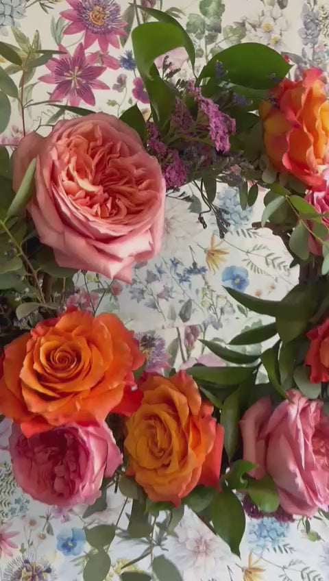 A beautiful, sustainable tribute for funerals, memorials, graveside services, or ocean ceremonies. Handcrafted with fresh seasonal blooms and lush greenery, this biodegradable wreath returns to nature without harm. Measures 16” x 16” in diameter and can be customized in any color palette you choose — from soft pastels to vibrant, uplifting tones. Perfect for honoring loved ones while caring for the earth.