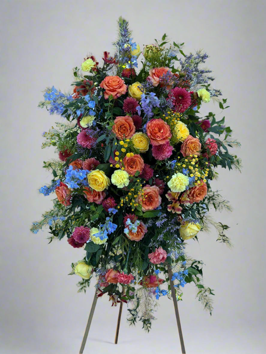 Celebration of Life Standing Spray – Vibrant Garden Soul Tribute