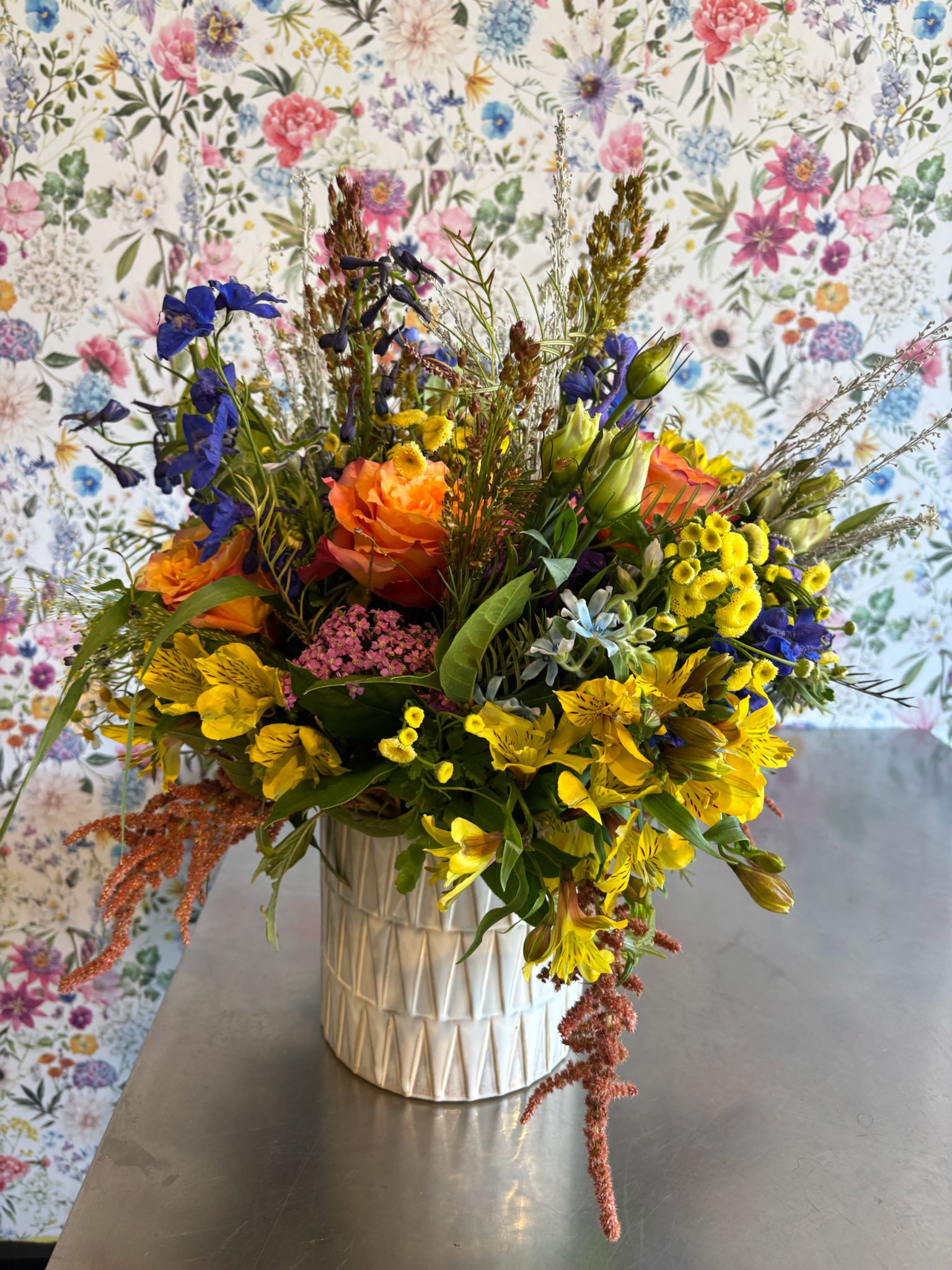 This farm-direct arrangement captures incredible energy and bold tones—a design that feels both wild and luxurious. Perfect for someone who wants flowers that not only look stunning but also tell a story of joy, strength, gratitude, and harmony.