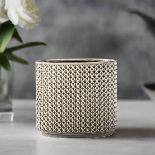 The Marbren Ceramic Oval Pot features a pressed clover link pattern that adds a touch of elegance and intricate charm to your décor. Finished in a warm light brown gloss, it blends beautifully with a variety of interior styles, from rustic to modern. Its oval shape makes it perfect for centerpieces, windowsill displays, or shelf accents.