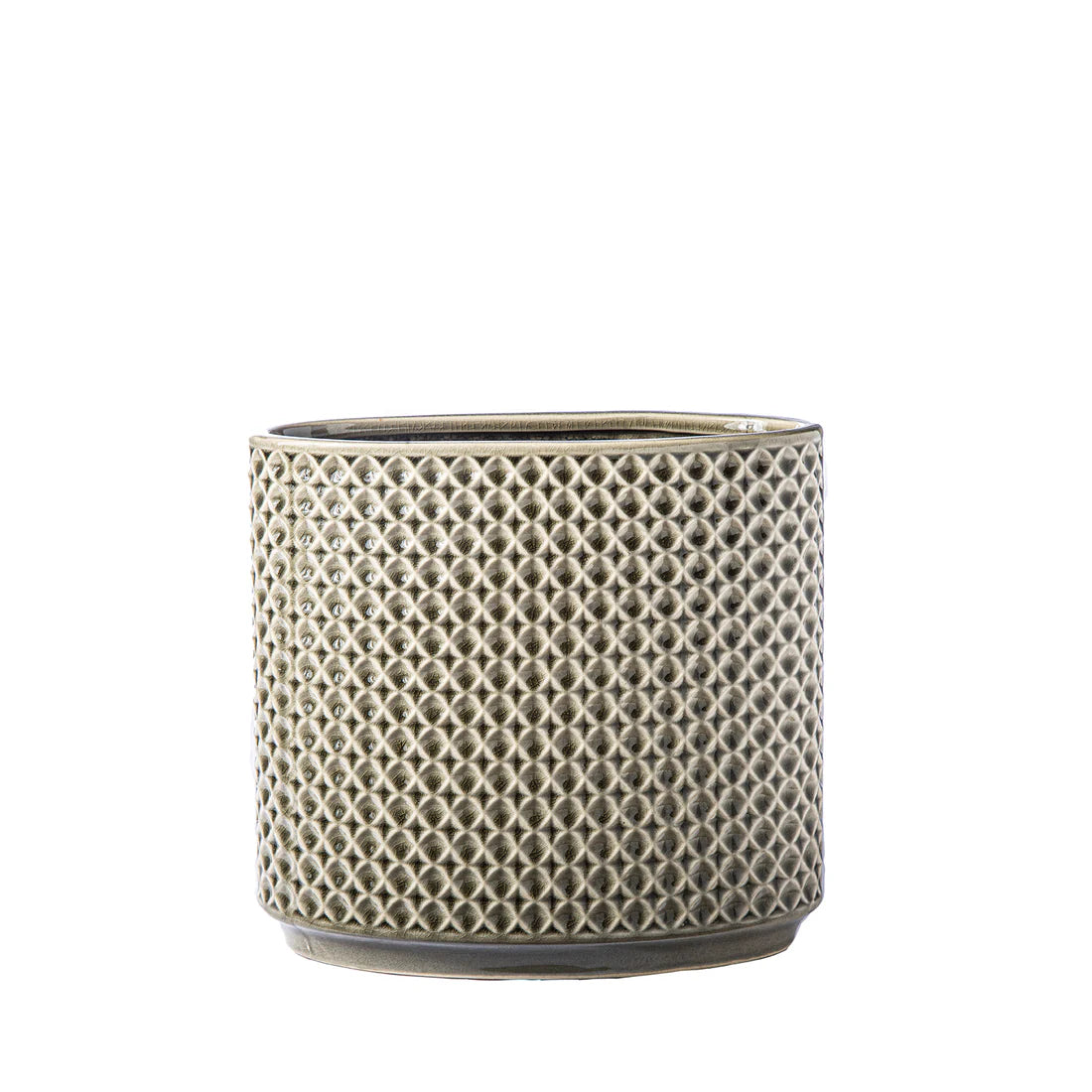 • Elegant oval-shaped ceramic pot with intricate pressed clover link pattern