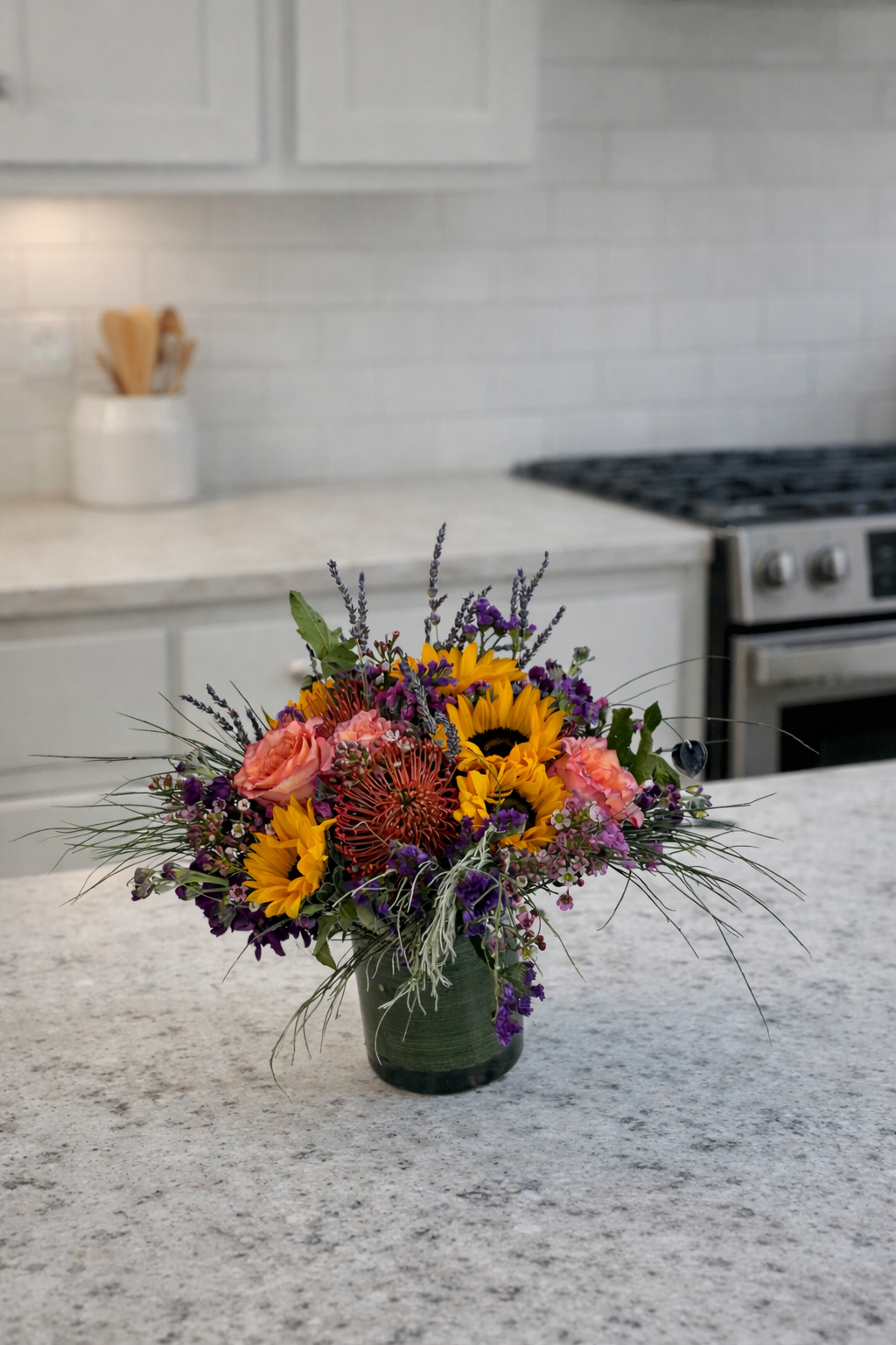 Sun & Soul Flower Arrangement | Sunflowers, Roses & Lavender | Farm-Fresh Floral Energy