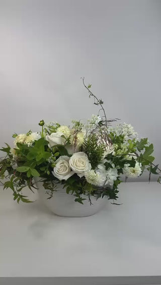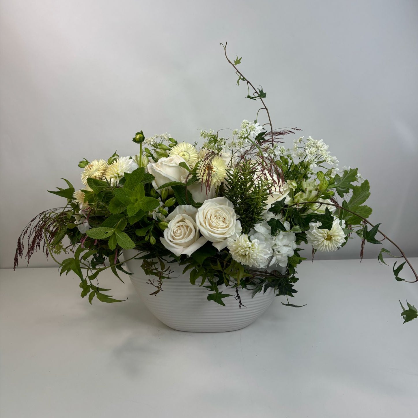 Step into a dream of pure elegance with our Whimsical White Garden Arrangement, lovingly designed by Jenny Barker – The Flower Doctor.