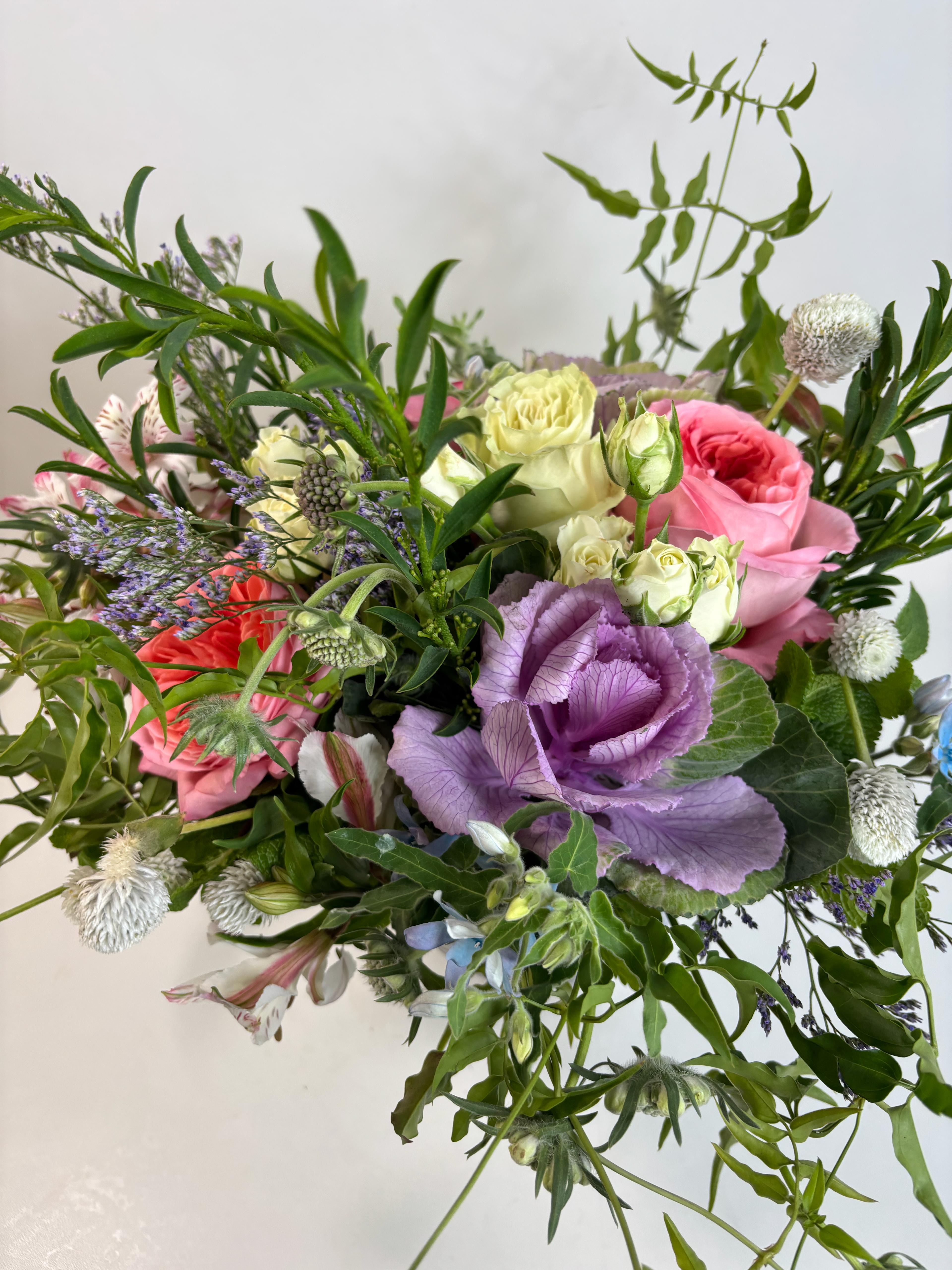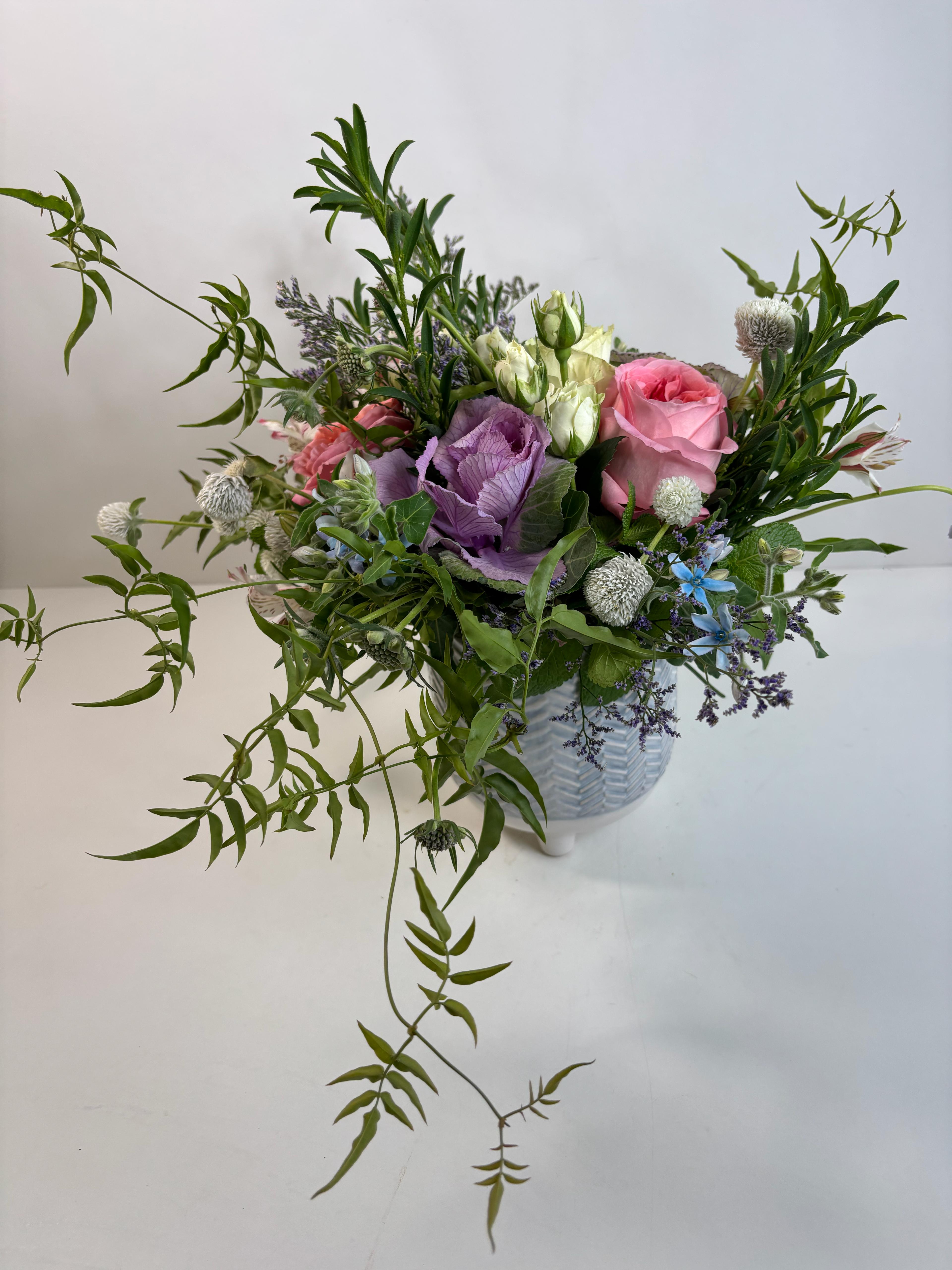 Bring beauty, stillness, and winter softness into your home with our Winter Pastel Garden Arrangement, a luxurious design created to brighten the season with gentle, feminine energy. This arrangement blends lush winter greenery with soft pastels — blush, lavender, cream, icy blue, and muted pink — offering a peaceful escape from the darkness of winter.