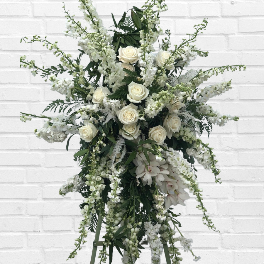 Bring an artistic touch and wild spirit to any celebration of life with our Cathedral Funeral Spray. This unique arrangement exudes a beachy vibe, sending heartfelt prayers to lift the spirits. Experience the beautiful artistry and powerful emotions behind this breathtaking display.