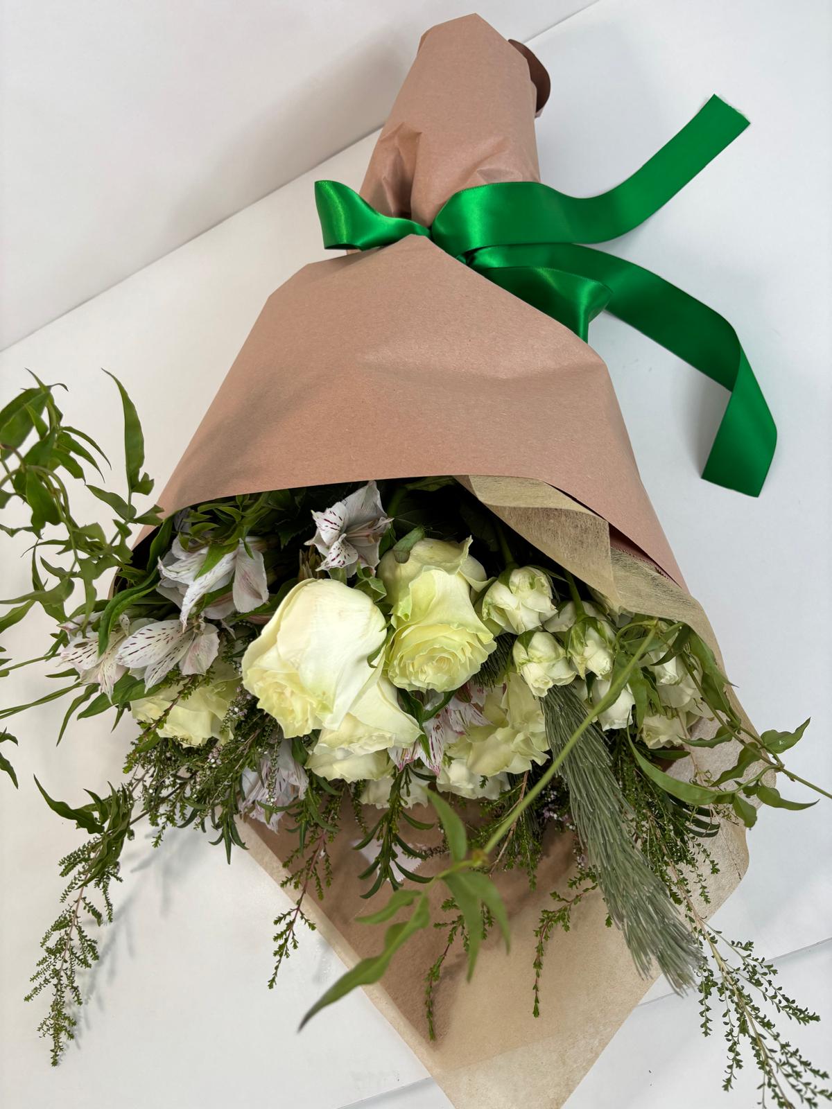 Soft, timeless, and full of grace — our White Winter Elegance Wrapped Bouquet is the perfect expression of purity, comfort, and classic beauty. This stunning hand-tied design features creamy white roses, delicate alstroemeria, lush seasonal greens, and soft winter textures that create a dreamy, snow-inspired moment in floral form.